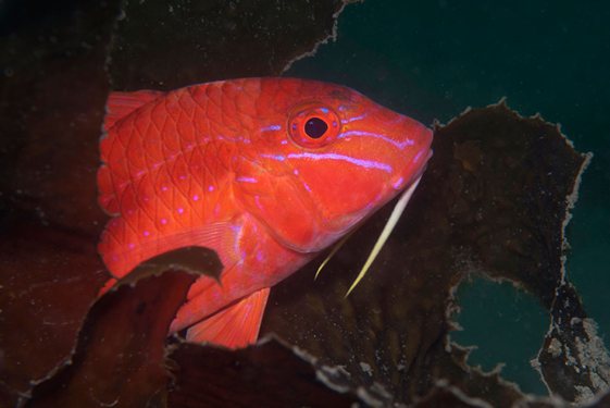 The most common goatfish in Sydney is the Blue Striped Goatfish, not to be confused with the almost identical Blue Spotted Goatfish. Both have blue spots and stripes - it's very confusing. To add to the confusion they can also change their colouring. Sometimes they're red and a few seconds later they're almost white. It's very, very confusing.